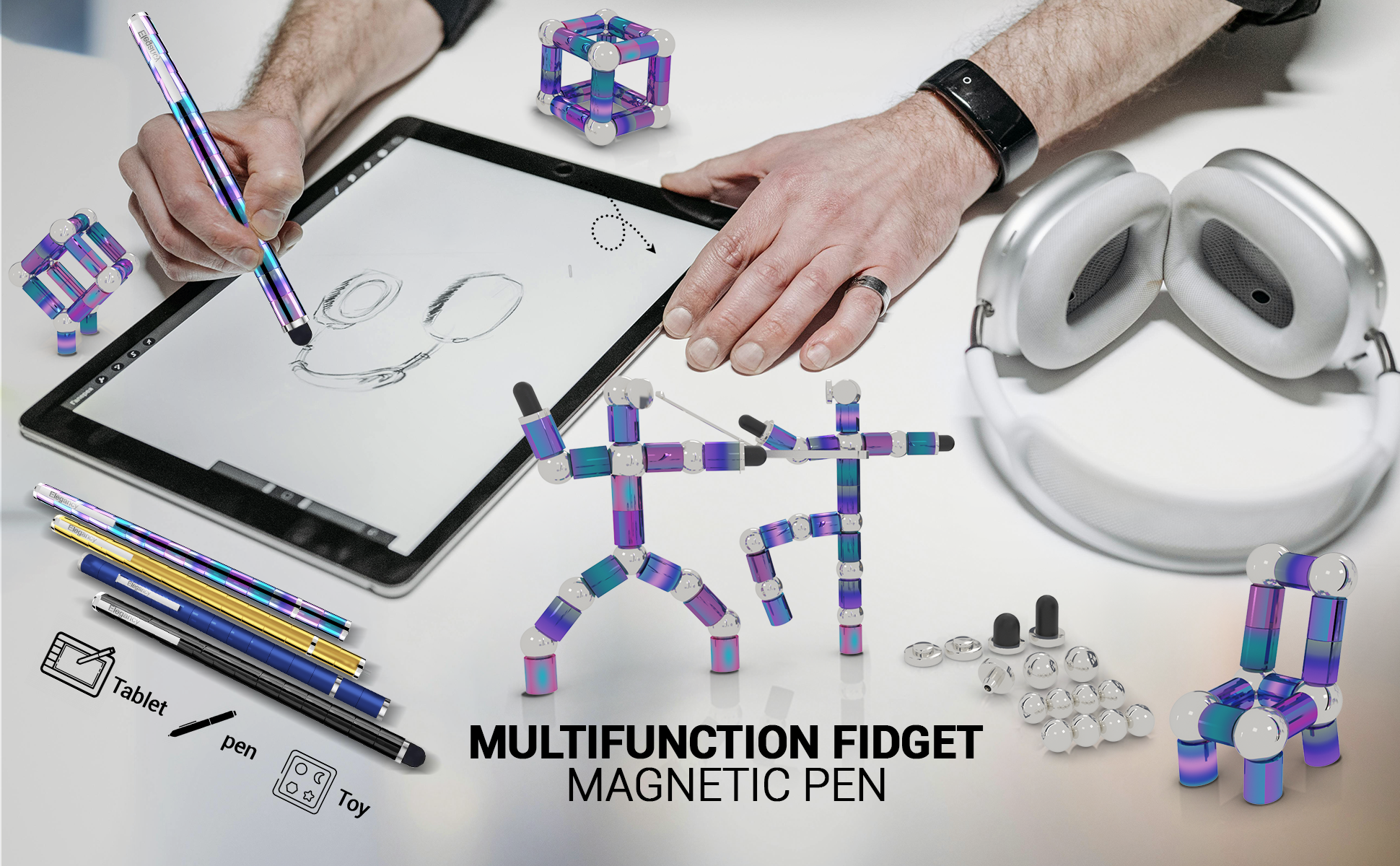 Elegancy Magnetic Fidget Pen with LED Light (NEW EDITION) – Deformable Stress-Relief Pen, Multifunction Stylus & Cool Gift for Men, Women & Teens